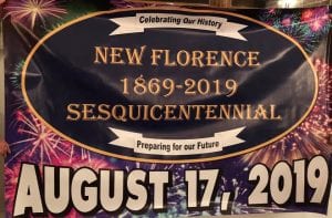 The town of New Florence will be celebrating their 150th anniversary with a town-wide celebration on August 17, 2019. The New Florence Sesquicentennial Committee is planning a parade, car cruise, live music, Civil War Encampment, historical displays, pie eating and milk chugging contests, Corn Hole Tournament, fireworks and much more! Volunteers and/or financial donors are needed. If you would like to help please contact the Sesquicentennial Committee using the information on the Community Organizations page.
