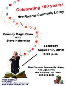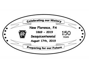 The Sesquicentennial committee acquired a very cool souvenir for the event. As some may recall, during the centennial (yes, 50 years ago so you’re old if you attended) there was a New Florence commemorative coin available. Those of us that have been around a while remember when the Pennsylvania RR had 4 sets of tracks going through town instead of the two sets today. As kids, my siblings and I would squish coins on the tracks. It was something to do. Well the committee has contracted with The Penny Men to have squished pennies as souvenirs for the event. The squished coins will be available with either a wrist band or a small collector’s book. They will be available during the event for $5 each. A big shout out to Todd Gable for doing the artwork for the design. The one image shows how the Penny Men take a drawing to a final squished penny. Also, many thanks to Rick Nesmith for posting images of a centennial coin on the New Florence (PA) Area Historical Society Facebook page. I copied the coin images here so folks could see what they looked like in case you don’t use Facebook. There’s images of the bands and booklet so you see what they look like too. The bands will be in assorted colors. Enjoy. Greg Csehoski.