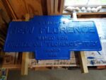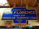 There are several additions to the website. First, Chief Jeffery W. Janciga of the St. Clair Township Police Department provide the Police Report – August 2021 for residents of New Florence to see what policing occurred in the community. Next, several items were added to the Events Calendar. The Valley Grace Brethren Church of Armagh will be hosting a Dino Party on September 25th. The children of New Florence and the surrounding area are invited to attend. Please see the flyer on the calendar for more information. The New Florence/St. Clair Township Sanitary Authority will be holding their next meeting on September 22nd. The meeting is open to the public. Finally, progress is being made on the town’s keystone markers by the Laurel Valley Area Historical Society (LVAHS). Below are some images of the signs being refurbished. They go from being sandblasted, primed (using spray can), painted blue (using a chip brush), and then yellow lettering (a foam brush was used). For comparison you can look at the two images at the bottom of this page to see how they’ve changed. More photographs and information are available on the LVAHS Facebook page. Please click on the photos below to expand. Enjoy.