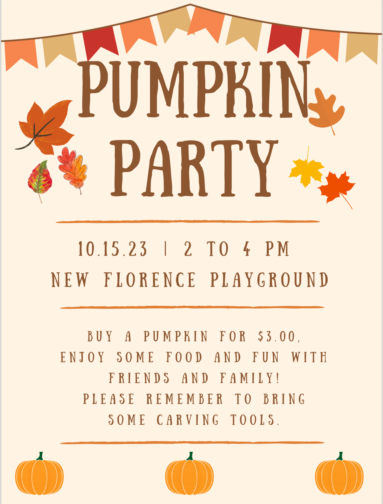 Lots of items were added to the website. First, the New Florence Community Library has lots of upcoming events. They have an adult book club meeting, a fundraiser at Hoss’s, and then their big fall book sale. They have also lots of different programs for kids at the library. Check out their Facebook page or get on their email list to stay up to date. Next, the New Florence Volunteer Fire Department will be having their next sub sale on October 7th. They will also be having live entertainment at the fire hall that evening. Then the New Florence Community Development committee has announced dates for pumpkin carving and trick or treating. Finally, the borough council had two announcements. The fall dumpster days will be October 20th and 21st. A flyer will be posted once approved. The other is an issue that’s come up with the picking up of yard waste. Piles of yard debris have gotten out of hand in some cases. Please see the list of new rules for the folks picking up waste. The flyers below provide more information. Thanks.