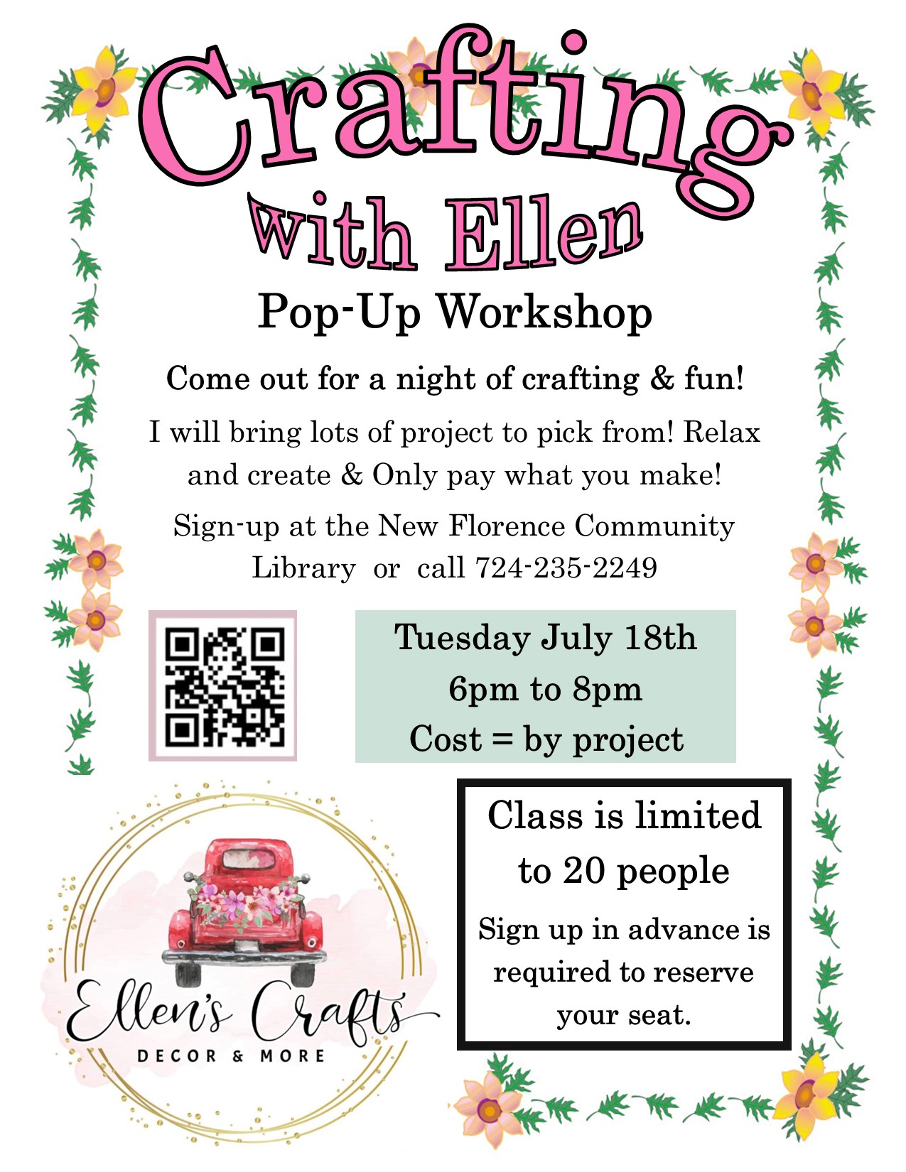 Several items were added to the website. First, the borough council minutes for the May meeting were posted. MINUTES 05-16-23 Also, Chief Jeffrey Janciga of the St. Clair Township Police Department provided the Police Report – June 2023 for the website. In the opening summary the Chief explains how snakes are on the move and a rattlesnake was found in the St. Clair Manor community. Be careful everyone. Next, the New Florence Community Library has several upcoming events for July. They have a whole collection of books they are giving away for free left over from their Spring Book Sale. They are also having a program on July 17th that’s an introduction to bird watching. Finally, on July 18th they are having another Crafting with Ellen event. Please see all the flyers below for more information. Thanks all.