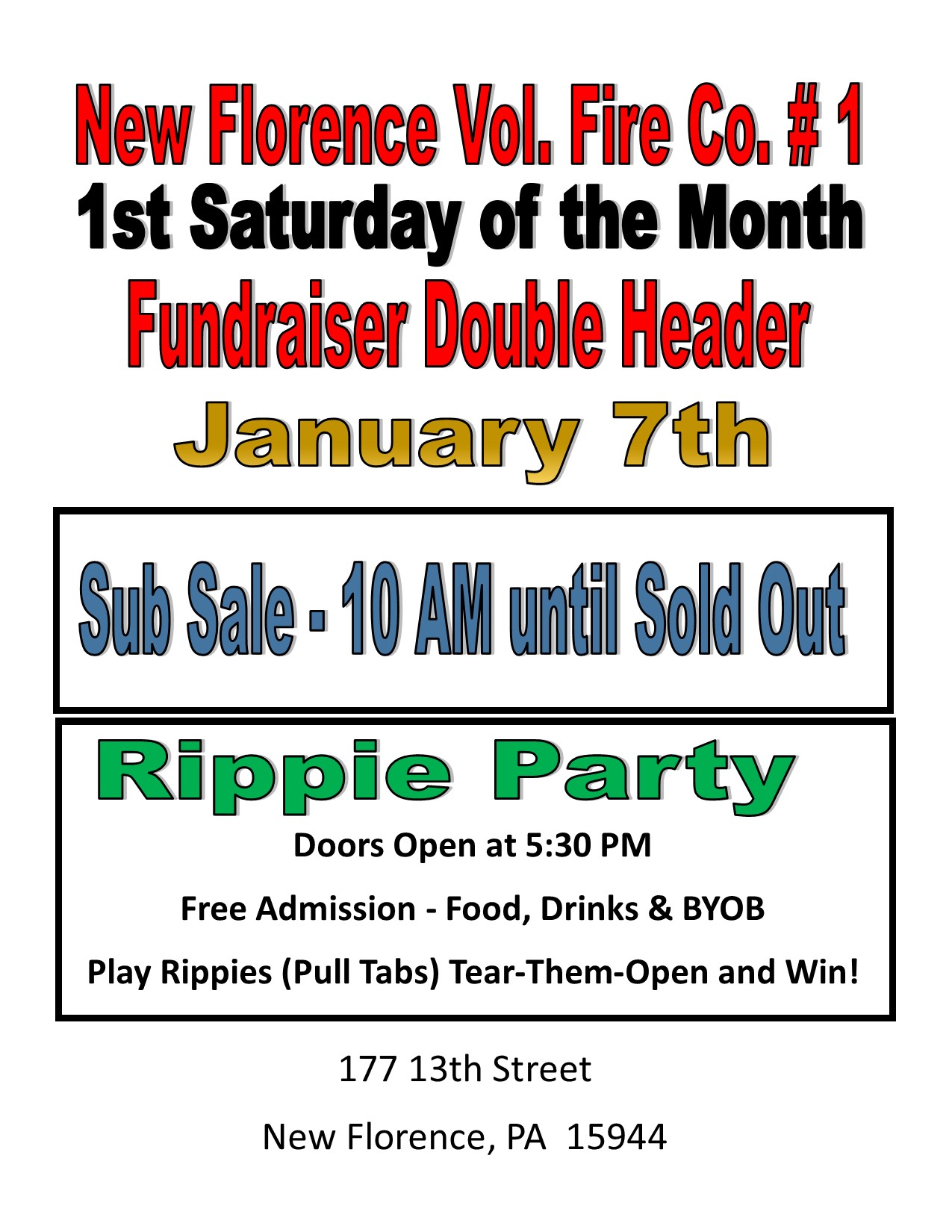 The New Florence Volunteer Fire Department will be holding their first fundraisers on January 7th. There will be a sub sale and later that day a rippie party. Also, the New Florence VFW Post 7622 would like everyone to know their yearly gun bash will be June 10th. Finally, though it’s not a New Florence specific event, Gob Day 2023 will be held at the Johnstown Galleria Mall on Saturday, January 28th starting at 10am. Gobs are a unique Pennsylvania tradition that helps promote our heritage. They also taste great. Please see the Events Calendar for additional information. Thanks all.