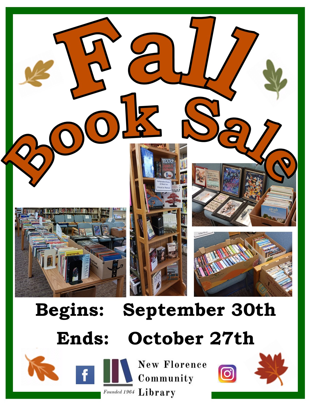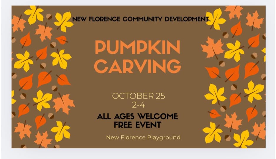 Here are a couple of updates to the website. First, the New Florence Community Library wants everyone to know the Gateway Clipper Showboat Luncheon Cruise is full. They do have a waitlist you can sign up for just in case. Also, the library is having their fall books sale from September 30th to October 27th. Please stop in and look for some treasures. Finally, the New Florence Community Development will be hosting this year’s Pumpkin Carving event on October 25 at the playground. Please come out and join the festivities. In previous years, there have been several impressive examples of carved pumpkins. Please see the flyers below for more information. Thanks.