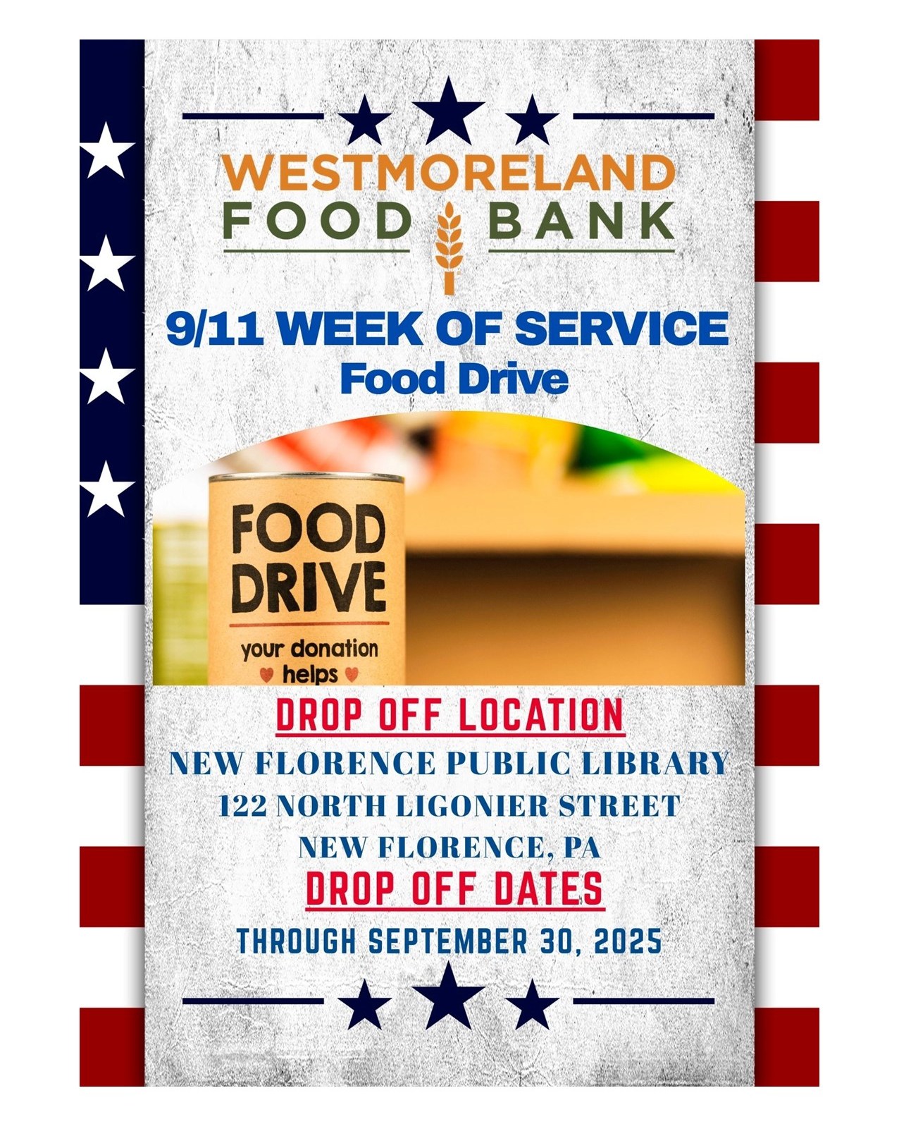 So much for added more updates the other day for the website. Where does the time go? Here they are now. First, the New Florence Community Library is helping the Westmoreland Food Bank in support of the 9/11 Week of Service Food Drive. The library is a drop-off location for the drive. The library is also doing another Gateway Clipper Showboat Luncheon Cruise. The Autumn Serenade Luncheon Cruise will be on Wednesday, October 15th. Those of us that went on the previous Gateway Clipper cruise had a great time. The library would also like residents to know September is Library Card Sign Up Month. Did you know one library card is good for all Westmoreland County Libraries? Stop in and get a card today. Next, the New Florence Community Development put out a Craft and Vendor Event Timeline for the festivities on Sunday, September 28th. Also, The New Florence Methodist Church is having a spaghetti dinner on October 4th from 5 pm to 7 pm. All are welcome to attend. Finally, there is the Municipal Election this fall in November. Important dates associated with the election have been added to the calendar. Please see the flyers below for more information. Thanks.