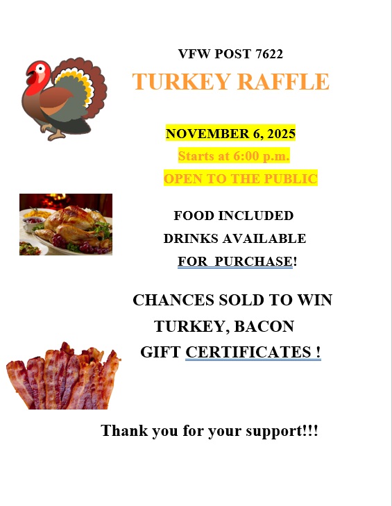 Here are a few updates for the website. First, here are the MINUTES 10-21-25 for the previous borough council meeting in October. Next, the New Florence Volunteer Fire Department will be having their monthly sub sale and rippie party on December 6th. The fire department will also have their Santa Express on the 24th of December. More information will be added as it becomes available. After that, the New Florence VFW Post 7622 has several ongoing events. The club is collecting items to donate to the Hollidaysburg Veterans Home. Please drop off items by 14 December. The club also has a Holiday Military Tribute Tree on display. Please stop in and fill out a tag to help decorate the tree and pay tribute to our veterans. Finally, Thursday is Thanksgiving. Please enjoy the holiday, eat well, visit with friends and family, and most importantly, drive safely. For trivia, consider the historical origin of Thanksgiving is often traced to a 1621 harvest feast between the English Pilgrims and the Wampanoag people in what is now Massachusetts. After a successful first harvest, the two groups shared a celebratory meal. While this event is considered the “first Thanksgiving,” the modern holiday evolved over time, with national Thanksgiving becoming a holiday in the 19th century, largely due to lobbying by Sarah Josepha Hale and a presidential proclamation by Abraham Lincoln in 1863. Please see the flyers below or the Event Calendar for more information on these great activities