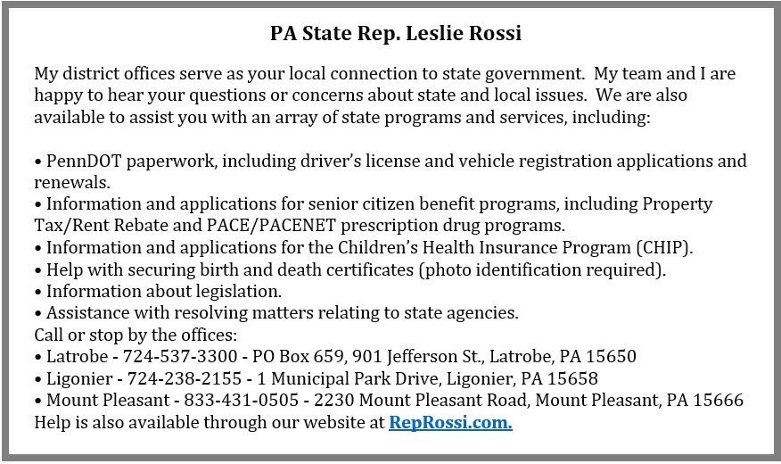 Here are some updates to the website. First, Chief Patrick M. Goggin of the St. Clair Township Police Department provided the Police Report – July 2025 for the website. Next, the New Florence Community Library did another updated flyer for the “Summer Train Ride & Lincoln Caverns Tour” adventure to let folks know the trip is sold out. They do have a waiting list for those who might still like to attend if someone must drop out. Also, the New Florence Volunteer Fire Department will be having their September sub sale and rippie party on the 6th. Tickets are also available for their Fall Gun Bash on September 20th. Finally, do you know about all the services Pennsylvania Representative Leslie Rossi’s office can provide? Below are just a few examples of what her office can help with. Check it out! For more information, please see the flyers below or the Event Calendar. Thanks.