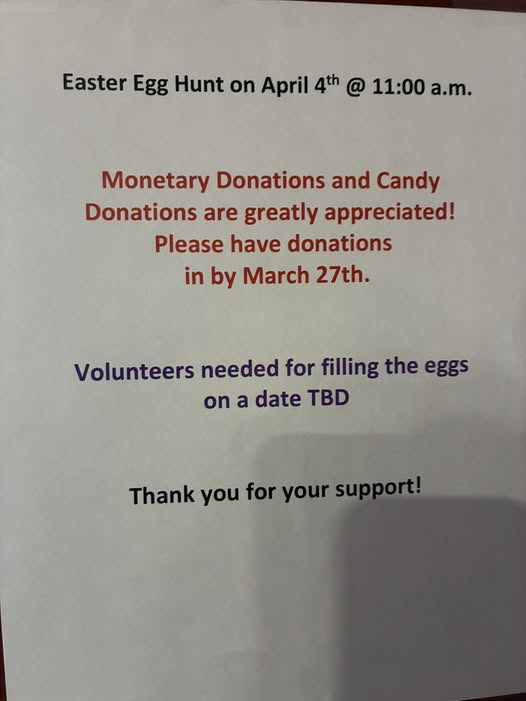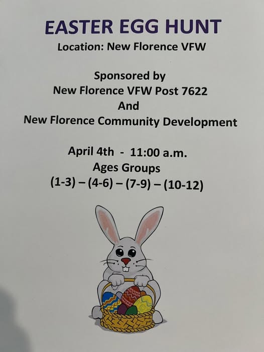 Here are more additions to the website. First, here is the MINUTES 02-17-26 for February’s borough council meeting. The council also has a proposed ordinance in draft out for review by residents. The document is 2026-03-02 DRAFT Ordinance For Recovering Costs of Emergency Responders. It sets in place procedures for emergency responders to obtain financial relief from residents who experienced an emergency. The document will be discussed at the April borough council meeting. If you are concerned about the contents of this proposed ordinance, please attend the meeting and let your voice be heard. Next, the New Florence Volunteer Fire Department will have their monthly sub sale and rippie party on April 4th. The fire department is also offering delivery of their subs within 3 miles of the station for those that can’t get out. Please see the event in the Calendar for more information. Finally, the New Florence VFW Post 7622 is seeking monetary and candy donations for their Easter Egg Hunt on April 4th. The deadline for donations is March 27th. Please see the flyers below for more information. Thanks.